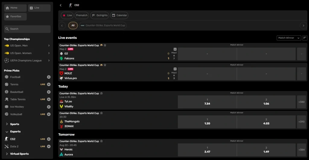 - Vast Selection: Over 100,000 events across a wide range of sports and esports.